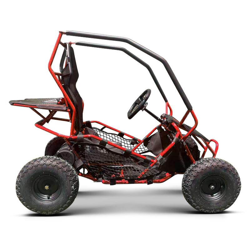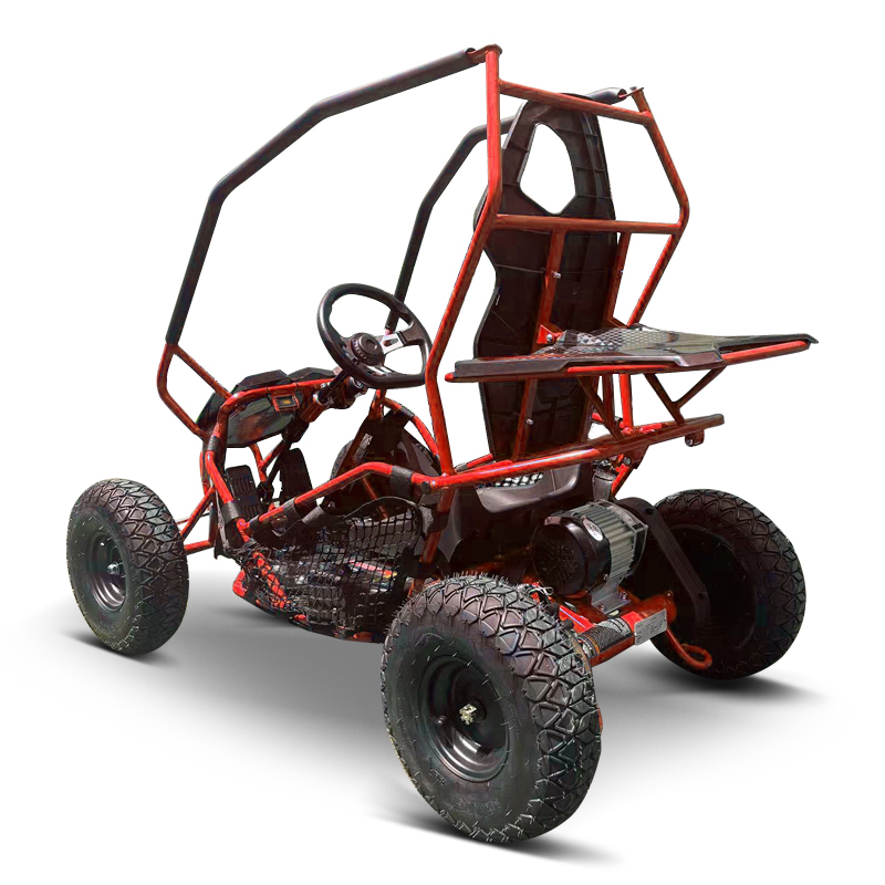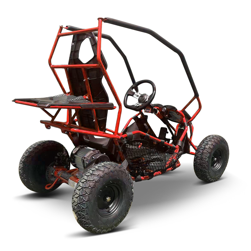 Der Buggy verfügt über eine 36 Volt Anlage, diese wird von leistungsstarken 12AH Batterien versorgt.