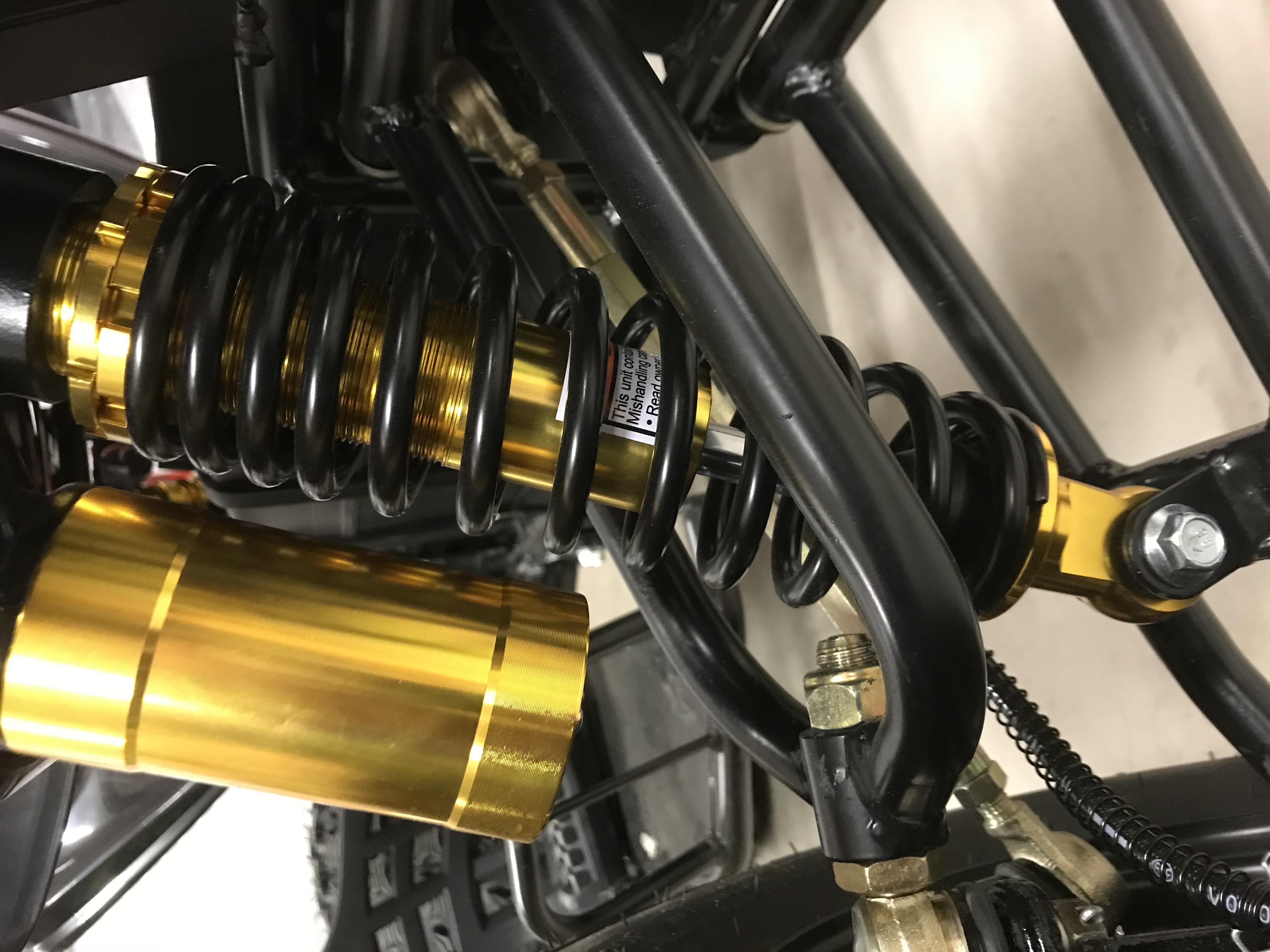 Gebremst wird das Quad an allen 4 Rädern durch hydraulische Scheibenbremsen. Billige Seilzüge sind hier fehl am Platz.